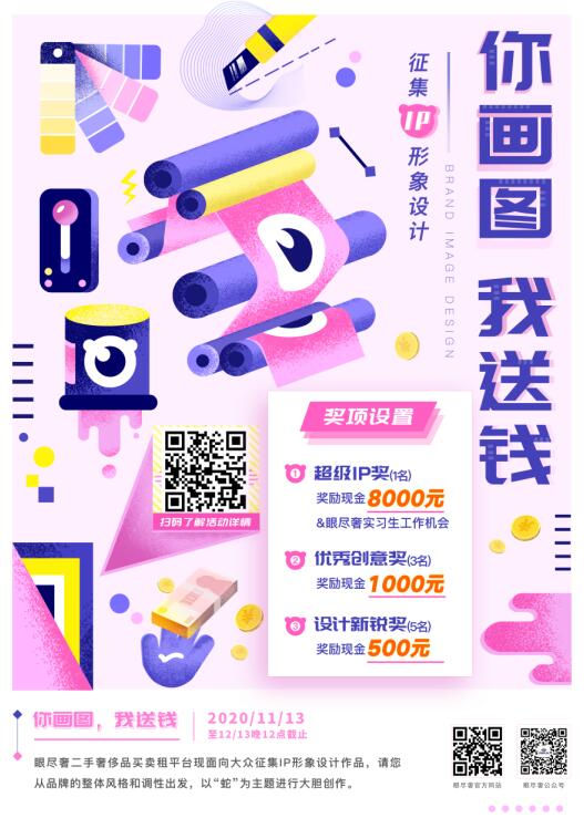 為提升品牌識別度,拉進用戶距離,眼盡奢現面向全國各大高校、社會征集形象設計作品。要求需符合眼盡奢二手奢侈品買賣租平臺整體的風格調性,以“蛇”為主題進行大膽創作。參賽作品需具有原創性,擁有完整的自主知識產權,不得仿冒國內外已上市產品或侵犯他人知識產權,嚴禁抄襲、剽竊行為。