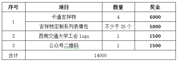 6. 西南交通大學工會有權在作者提供的源文件基礎上與作者協作調整,以確定最終作品。西南交通大學工會將為最終獲選作品的作者頒發千元大獎,如下: