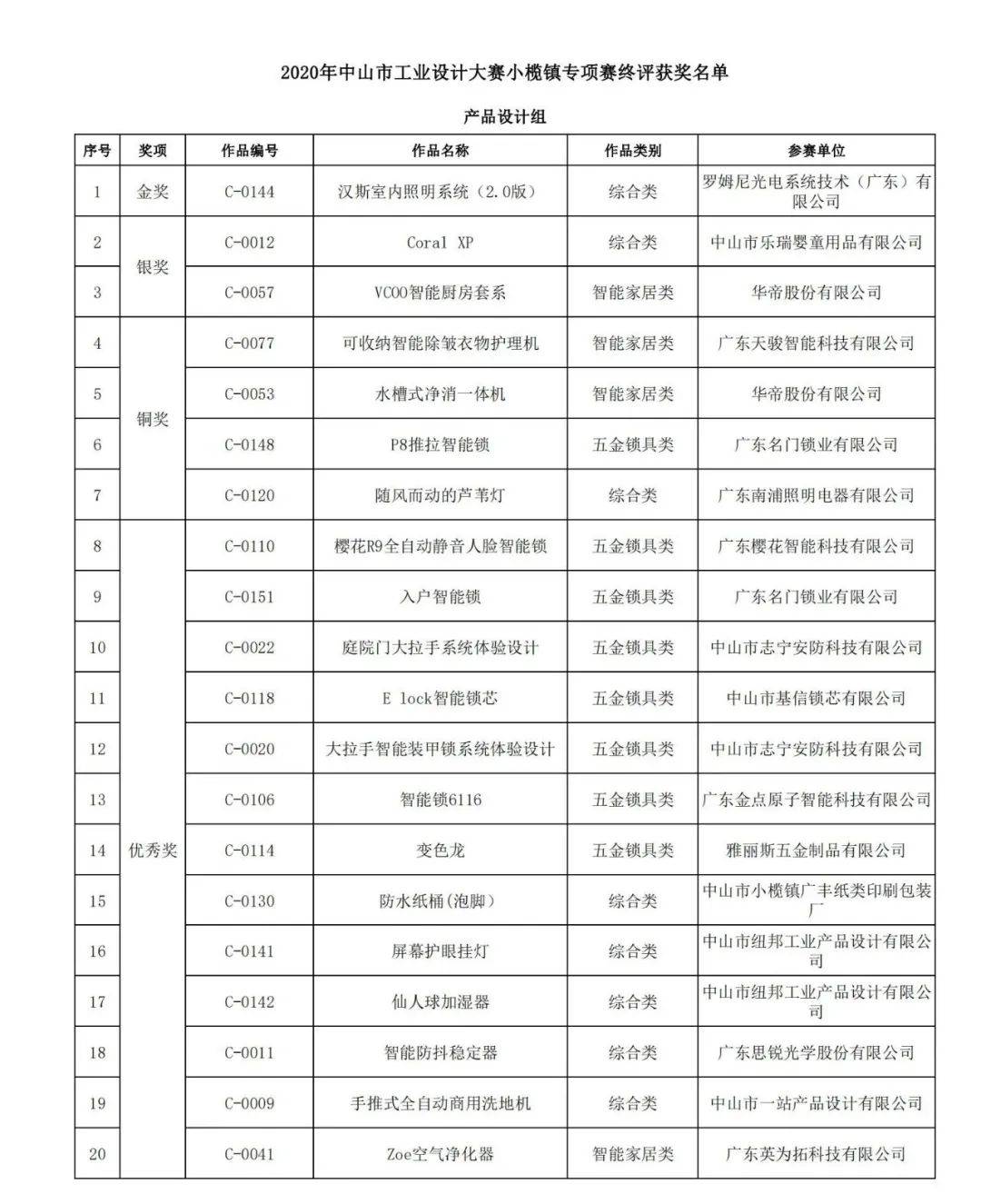 附件:中山市工業(yè)設(shè)計(jì)大賽小欖鎮(zhèn)專(zhuān)項(xiàng)賽終評(píng)獲獎(jiǎng)名單