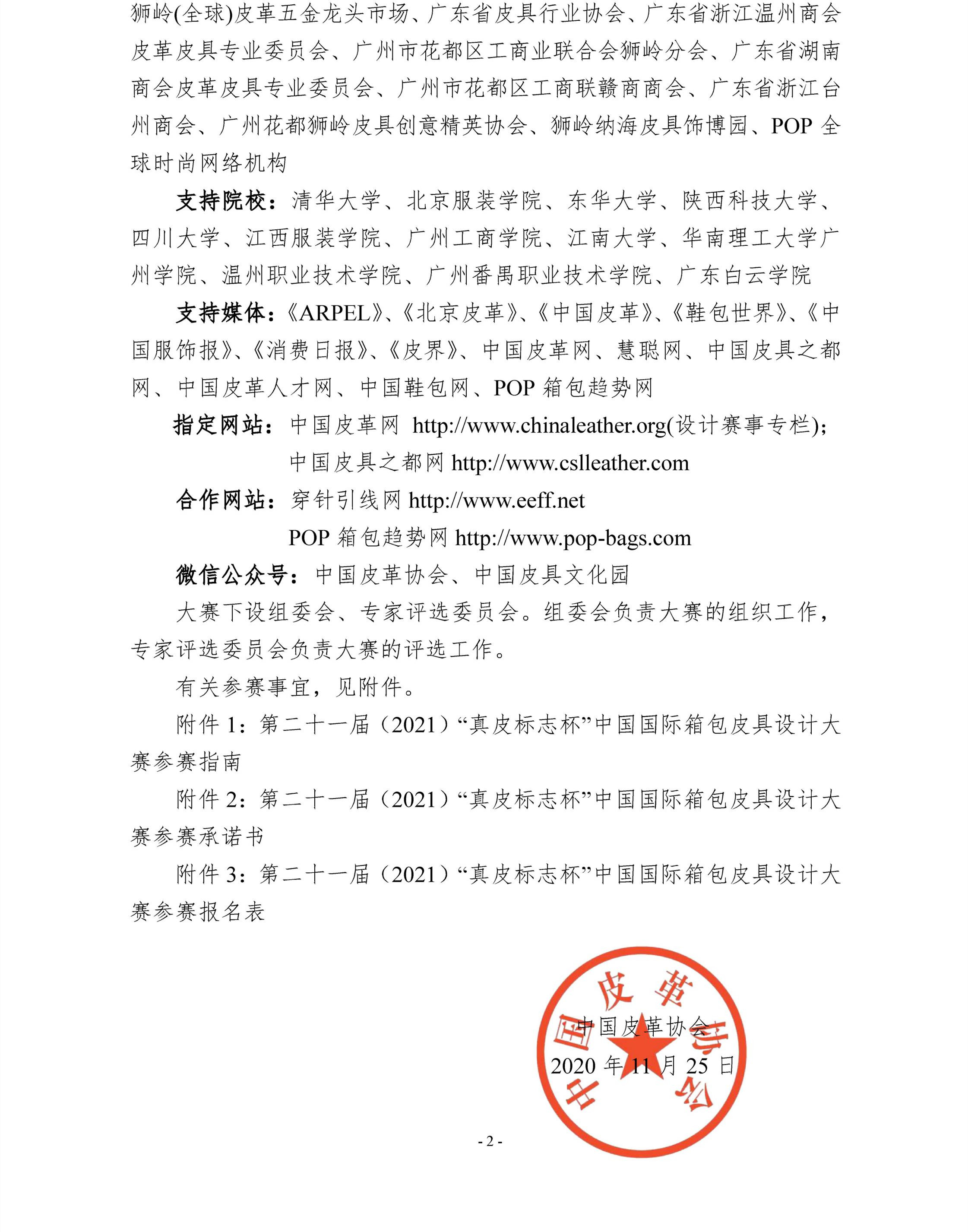 初賽和決賽評選結束后,大賽組委會將通過中國皮革網http://www.chinaleather.org,中國皮具之都網http://www.cslleather.com,大賽微信平臺中國皮革協會、中國皮具文化園公布評選結果,請參賽者留意查詢。