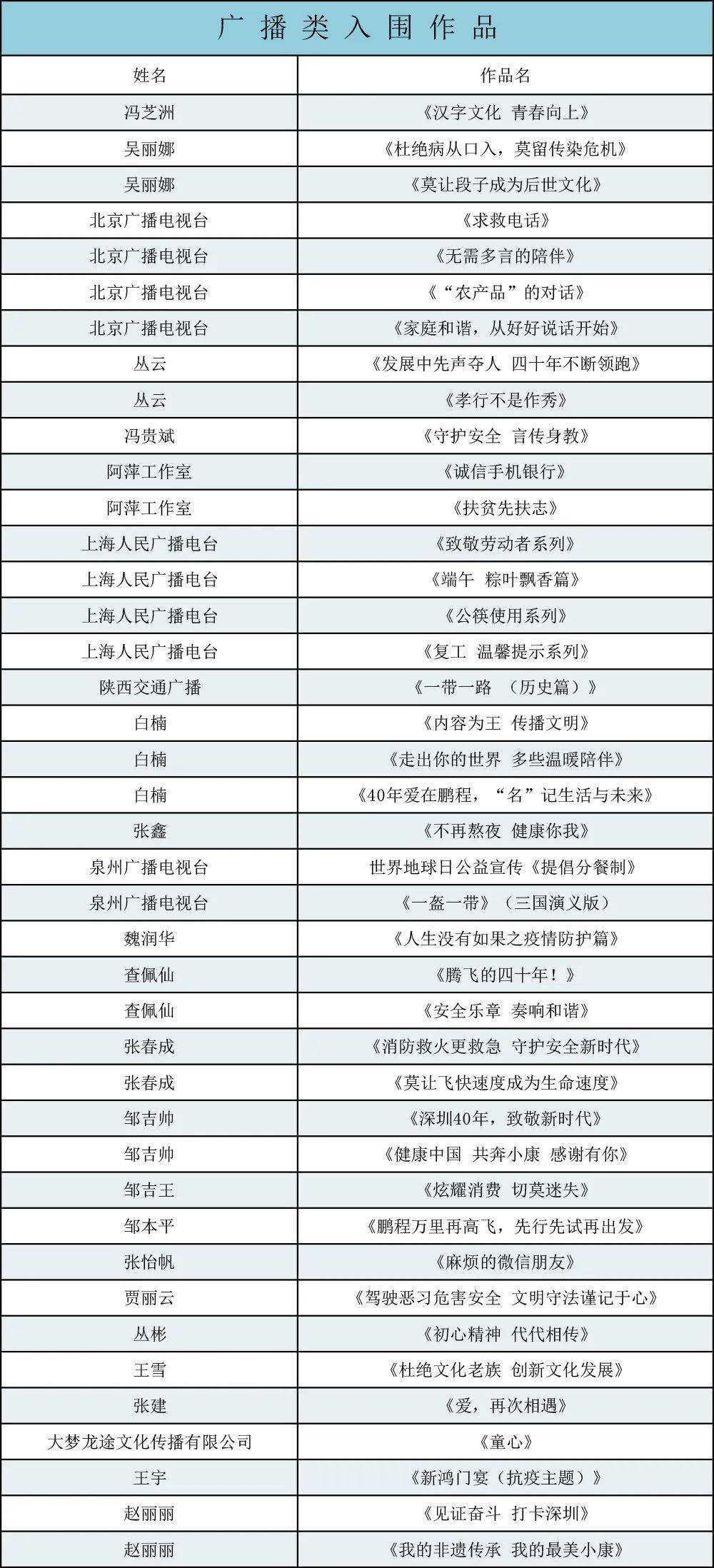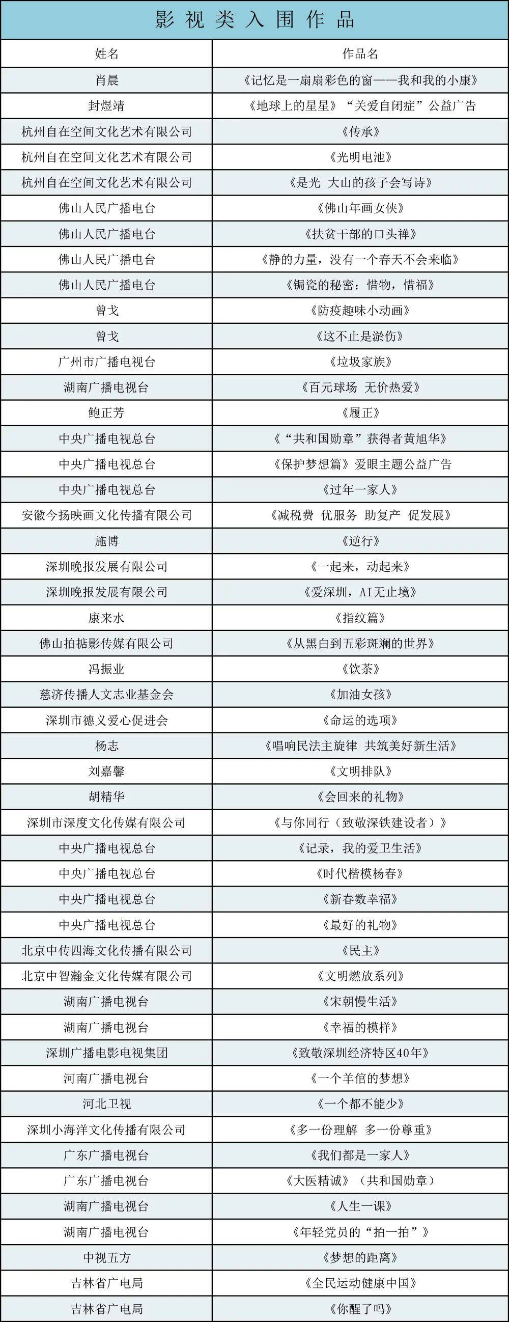 專家評(píng)審團(tuán)由10位業(yè)內(nèi)專家組成, 共有49件影視作品、41件廣播作品和33件新媒體作品入圍(名單附后)。