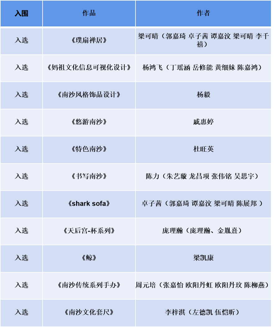 自去年11月起,“南沙郵輪母港杯”青年文化藝術設計大賽便開始面向大灣區各高校青年公開征集參賽作品。歷時一個多月,大賽組委會共計收到 參賽作品727份,涵蓋了來自全國各高校院校和社會機構的優秀投稿,其中 城市特色旅游產品設計類共計458份, 南沙郵輪母港專題設計類共計269份。 各類作品都以各自創新的靈感而大放異彩,共同展現了灣區城市特色的文化魅力。