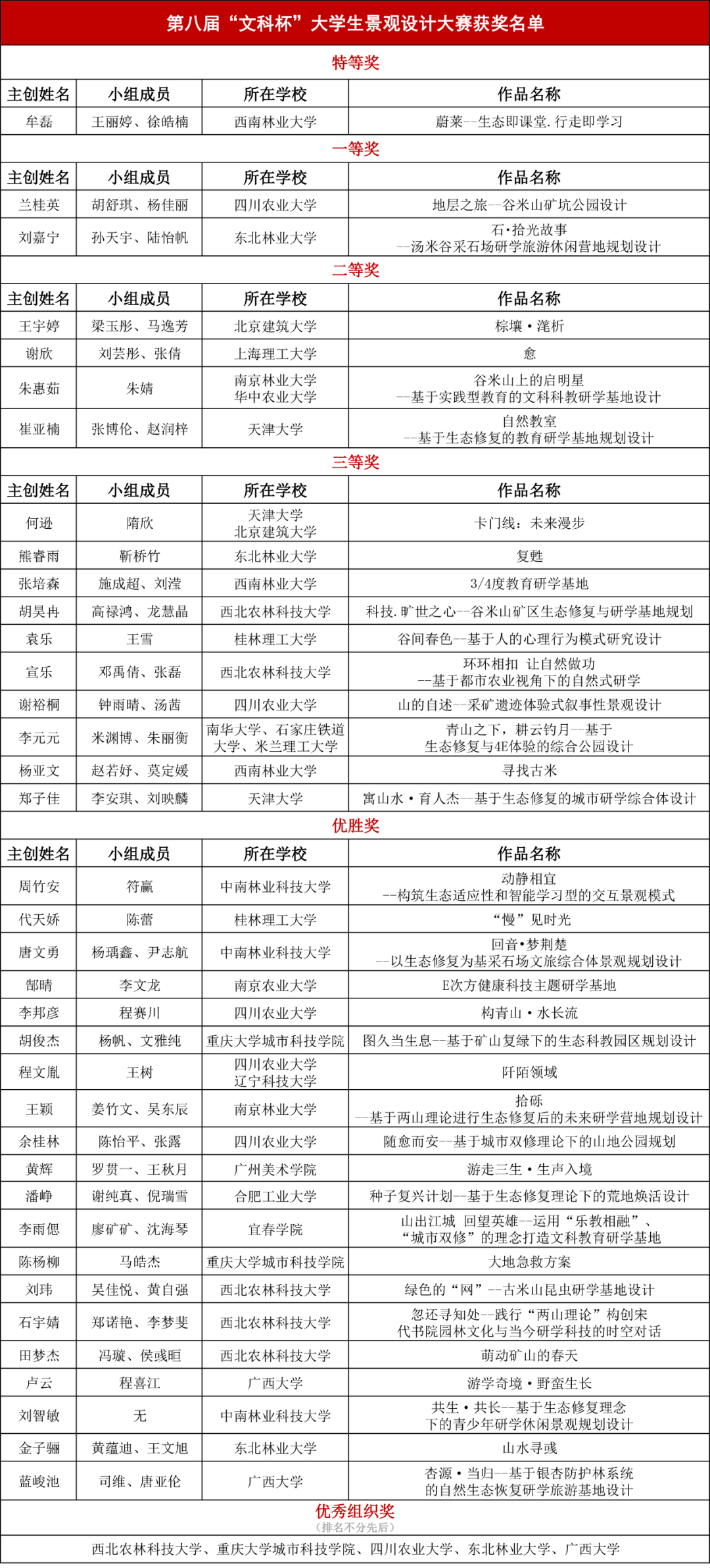 在全球疫情蔓延的大環境下,文科園林積極響應國家防疫政策,將大賽線下活動改為通過視頻匯報的線上形式進行。在總決賽現場,評委專家對入圍作品進行了多維度點評,從項目分析、主題立意、整體布局、技術設計、作品呈現形式等方面對作品進行綜合評分。最終,西南林業大學的牟磊、王麗婷、徐皓楠團隊創作的作品《蔚萊——生態即課堂?行走即學習》獲得專家評委的一致好評,摘得“特等獎”桂冠。