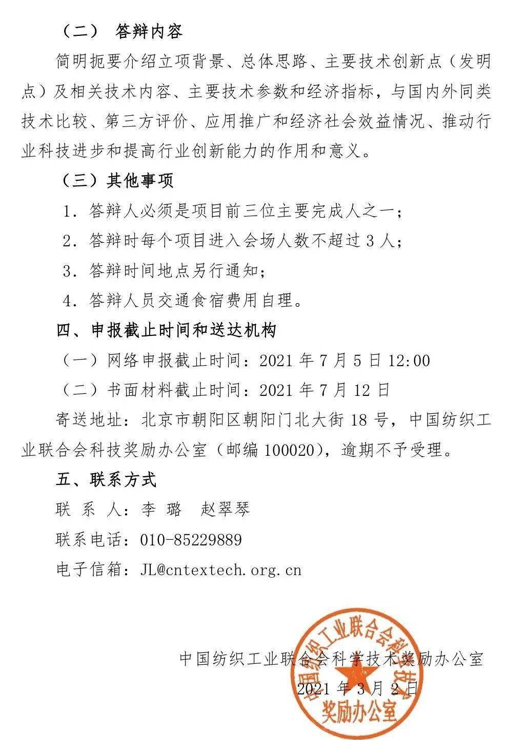據中國紡織工業聯合會科學技術獎勵辦公室近日發布的通知,“紡織之光”2021年度中國紡織工業聯合會科學技術獎的申報工作已經啟動。請各有關單位嚴格按照《中國紡織工業聯合會科學技術獎勵辦法》和《中國紡織工業聯合會科學技術獎勵辦法細則》做好項目的申報工作。