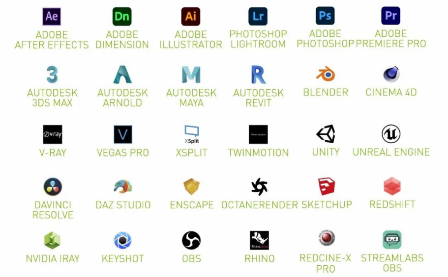 每塊NVIDIA GPU都有免費的專屬Studio驅動加持,因此創意應用得以充分發揮性能。這些驅動由NVIDIA為設計師精心推出,與Adobe和Autodesk等60+款國際一線應用開發商聯合研發優化,可持續改進您的體驗,助您實現更智能的工作方式,擺脫繁瑣,用先進的 AI 技術為您喜愛的創意應用加速。它們久經考驗、穩定可靠,并經過廣泛測試,可助您輕松處理大型復雜項目。