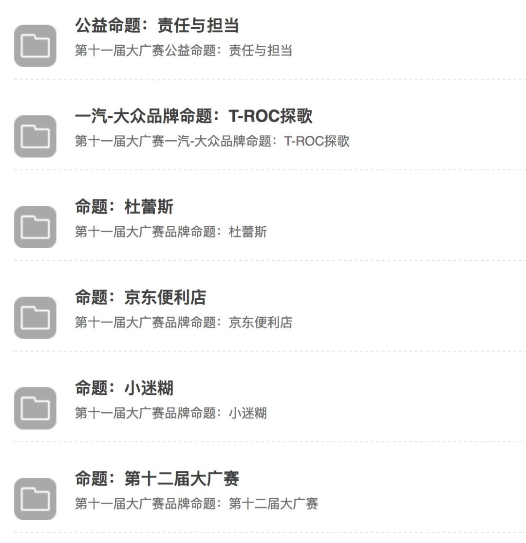 參賽作品分為平面類、視頻類、動畫類、互動類、廣播類、策劃案類、文案類、營銷創客類、公益類等九大類。