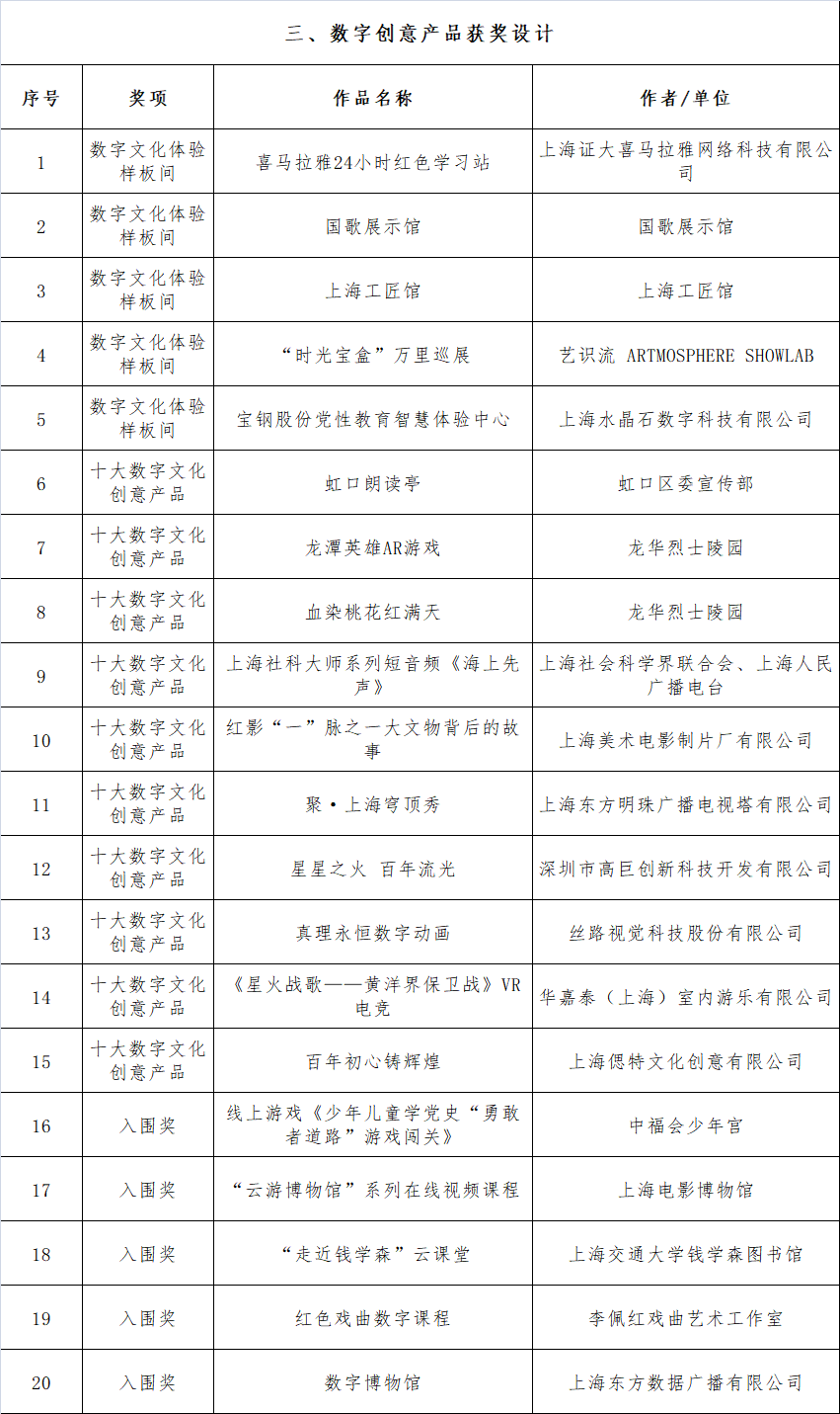 獲獎名單如下: