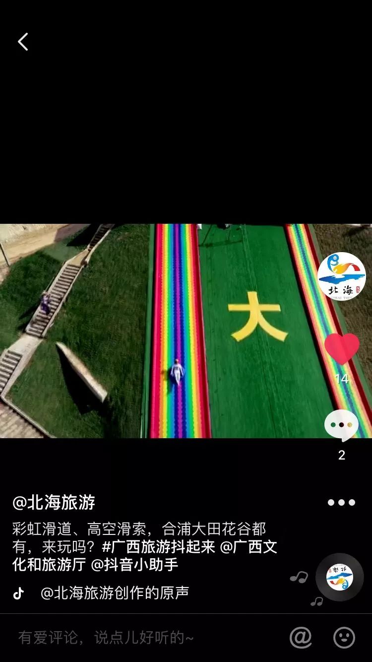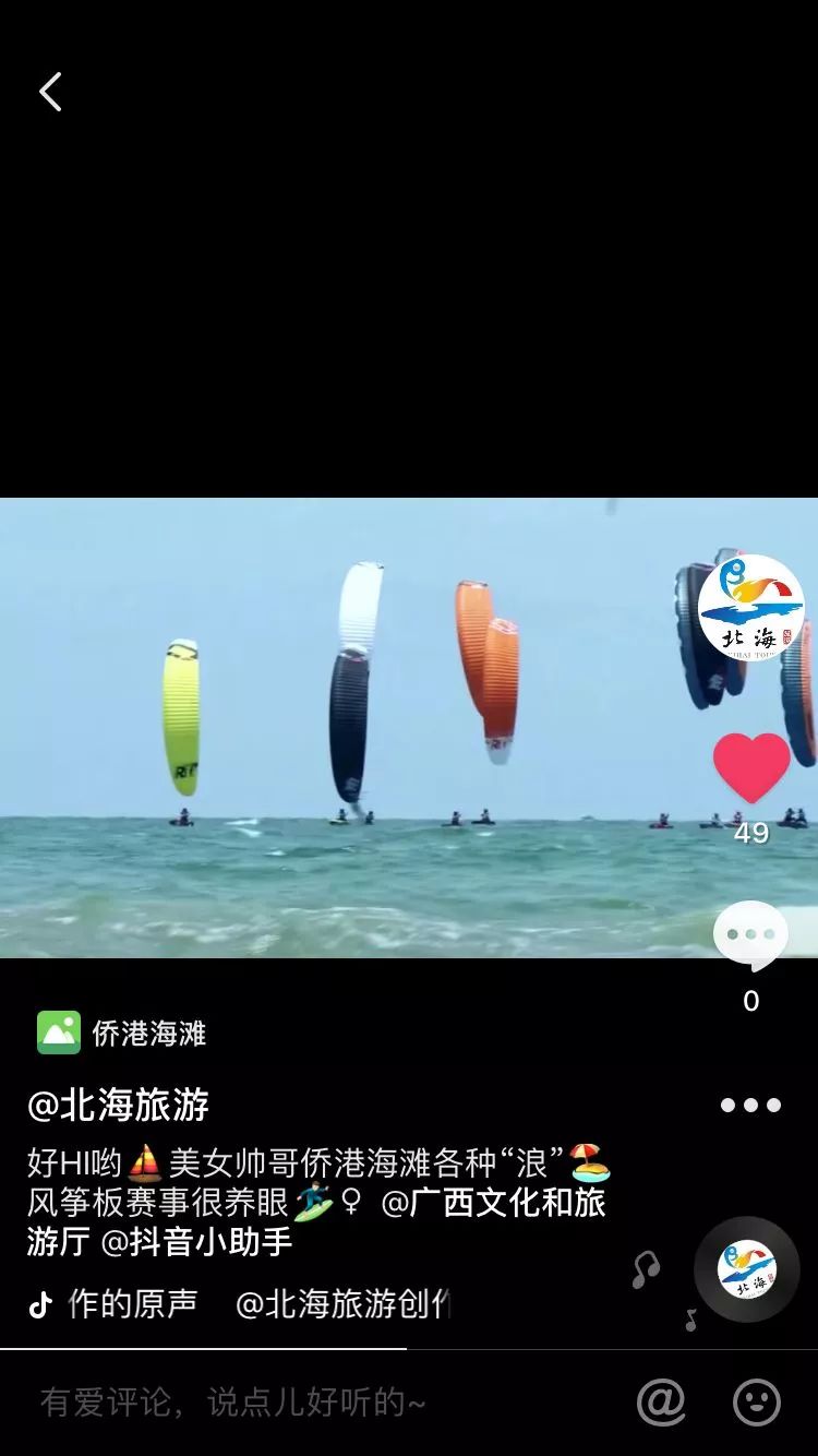 2.關注北海旅游抖音號( 1203334723 ),發(fā)布作品后,帶話題#游在北海,并@北海旅游。將參賽視頻抖音鏈接、抖音號、作者姓名、聯(lián)系方式作為正文,視頻作為附件,發(fā)至郵箱:dmbhdsp@126.com