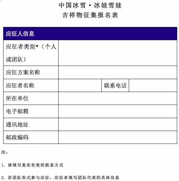 附:中國冰雪·冰娃雪娃吉祥物征集報名表