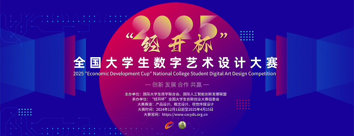 為進一步促進大學(xué)生對數(shù)字藝術(shù)創(chuàng)作的熱情和創(chuàng)造力,激發(fā)他們的設(shè)計潛力,并提供一個展示和交流的平臺。創(chuàng)賽網(wǎng)、國際大學(xué)生商學(xué)聯(lián)合會、國際人工智能創(chuàng)新發(fā)展聯(lián)盟、決定面向內(nèi)地及港澳臺地區(qū)聯(lián)合舉辦2025年“經(jīng)開杯”全國大學(xué)生數(shù)字藝術(shù)設(shè)計大賽,競賽將聚焦于未來科技與藝術(shù)的融合,鼓勵參賽者通過數(shù)碼技術(shù)的運用,呈現(xiàn)出獨特、創(chuàng)新的藝術(shù)作品。
