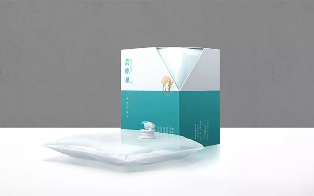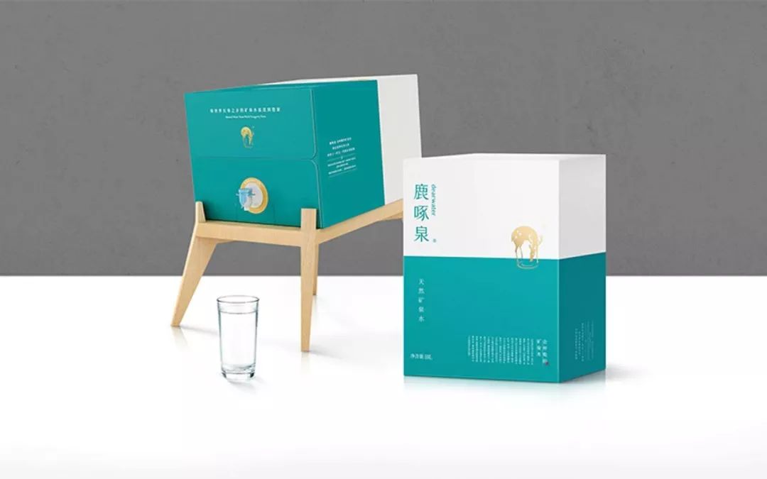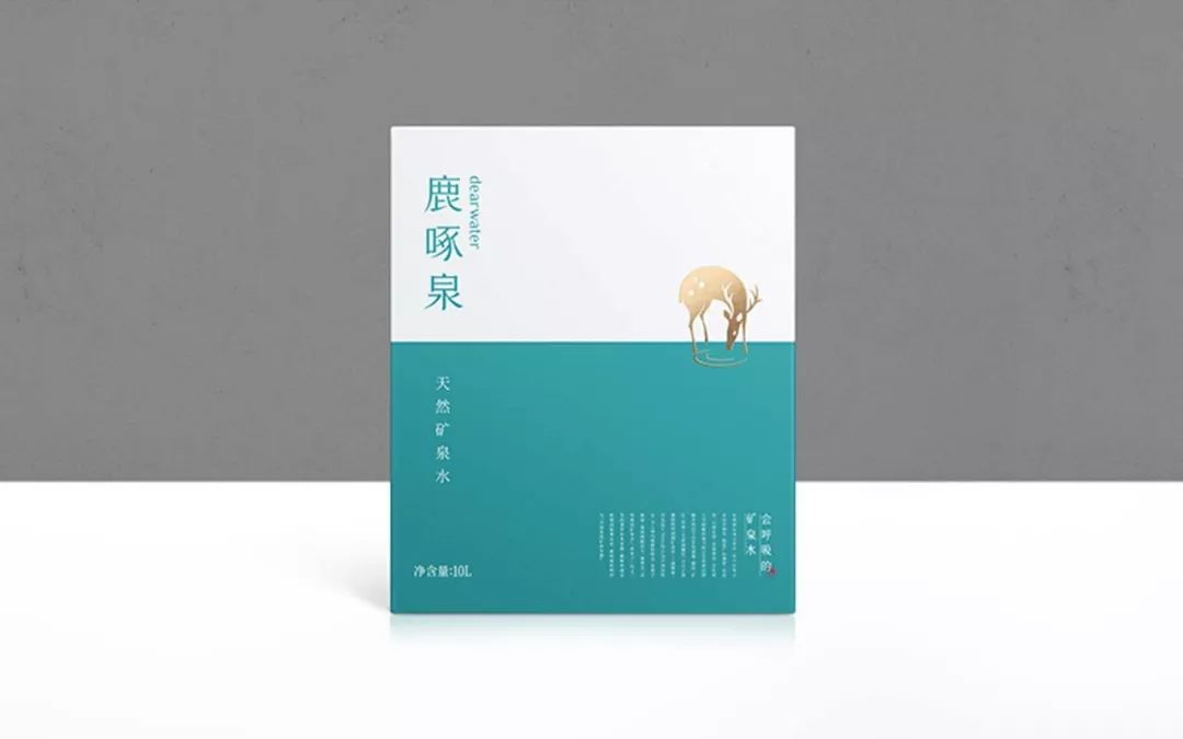 以“鹿啄泉”品牌符號為包裝創(chuàng)意靈感,上白下藍(品牌色:馬爾斯綠)的簡潔分割,形成“靈鹿飲泉”的空靈意境。