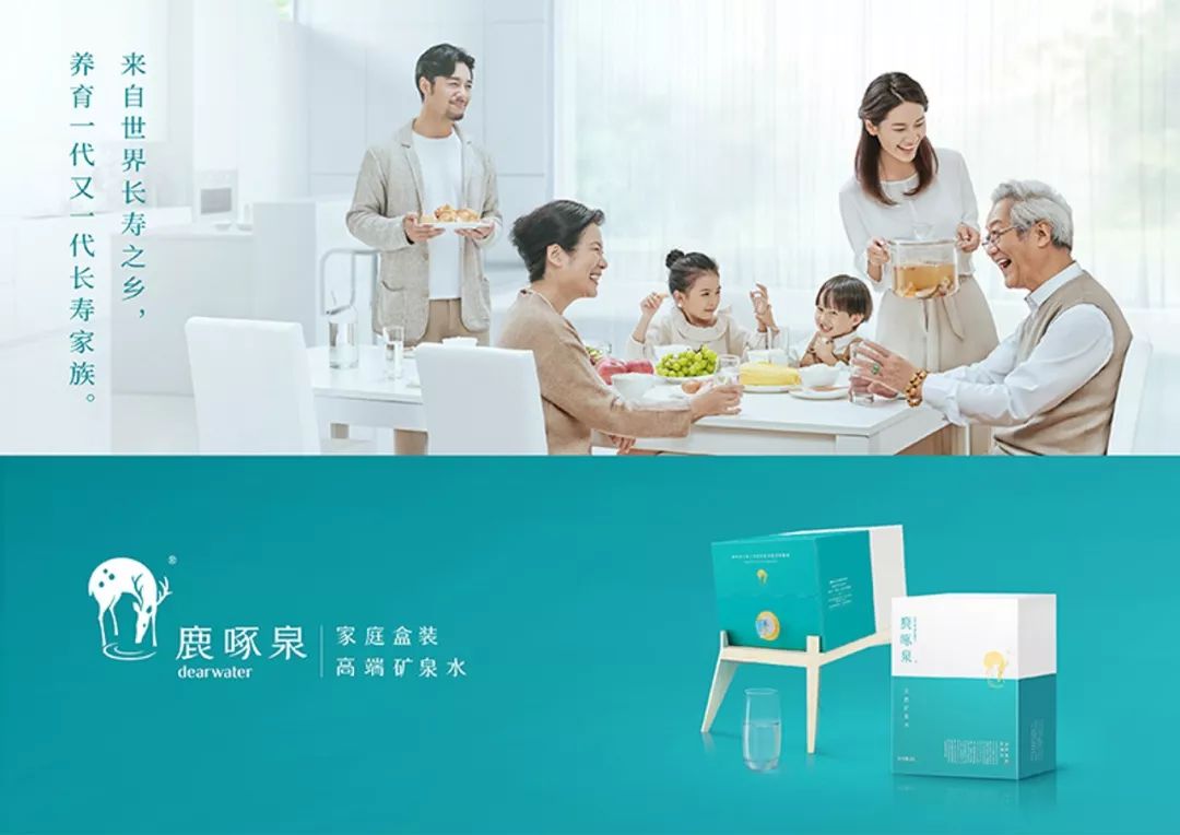 鹿啄泉的品牌定位是“家庭高端盒裝礦泉水”,致力于全方位打造高端精致的消費體驗。