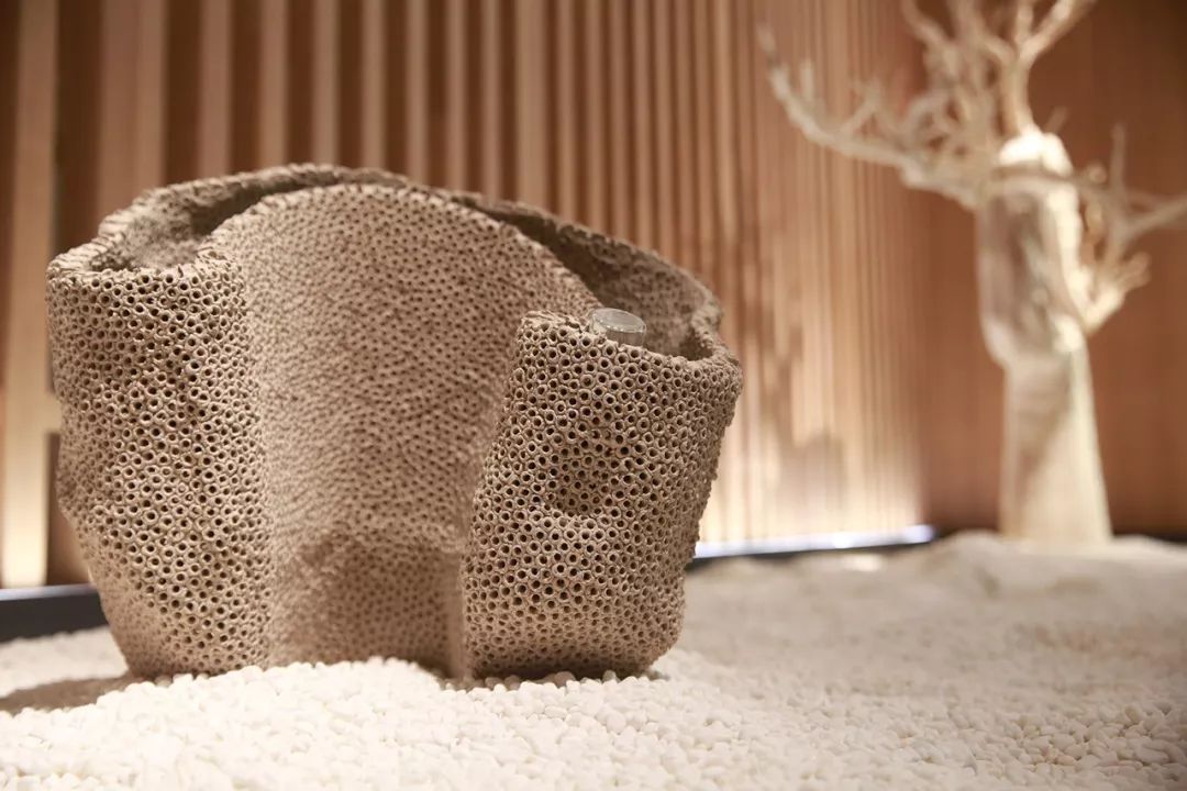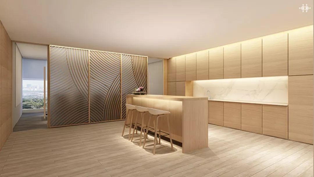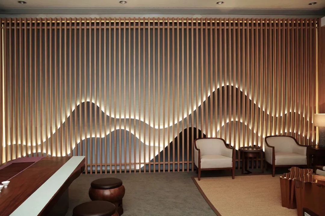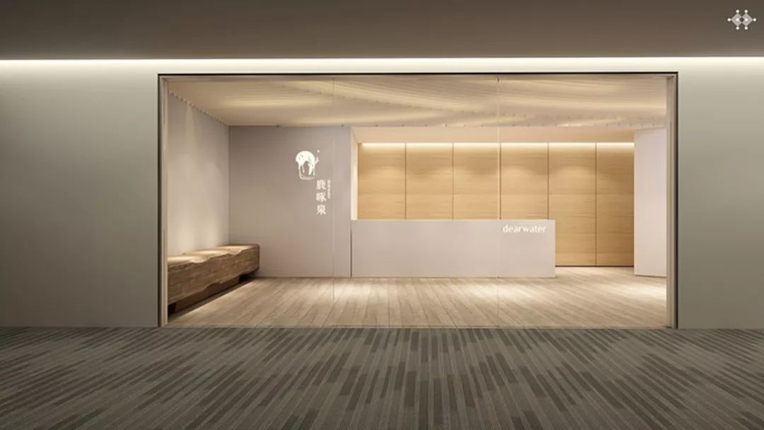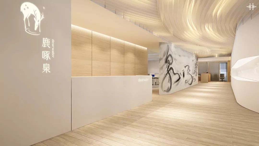 在辦公空間設計上,延續(xù)品牌現(xiàn)代簡潔、自然清新的風格,抽取LOGO中的“漣漪”圖形,使空間富有多層次的光感和流動感。由靳埭強先生親筆題書的“鹿啄泉”三個字是空間內的點睛之筆,水墨暈染,波紋流轉,意與境融合呼應。
