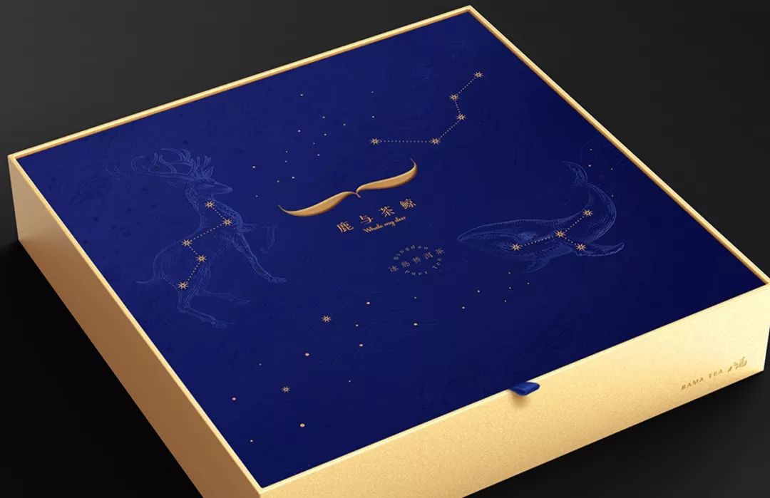 鹿與茶鯨,是八馬旗下新推出的針對年輕人的膠囊式茶產(chǎn)品,定位輕奢,新生代的選擇。設計公司在思考創(chuàng)意時,命名來源于茶界著作 《陸羽茶經(jīng)》的諧音,轉化為“鹿”與“鯨魚”兩個跨界物種,難得的相遇,表達一種珍稀的情感,凝聚在每一刻茶膠囊里。設計氛圍通過浩瀚星空,創(chuàng)造一種“相逢相知”,正如這款產(chǎn)品“一顆就是一個世界”。