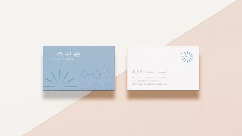 設計師提取了最直觀的十點鐘作為基礎視覺形象,在設計概念演繹上,取意“文化蒲公英”,即十點書店如同一朵隨風起舞的蒲公英,柔軟又富有生命力;是文化的孕育者,也是文化的傳播者。十點鐘既直抒胸臆,亦是文化蒲公英的縮影;書籍是時間的刻度,亦是文化的種子。簡潔的形式讓標志擁有更多的包容性,滿足在店中其他板塊的延展應用。