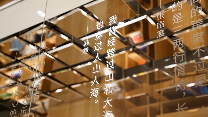 相較以往的覔書店,國貿店有足夠的空間做更多的嘗試。在商場的公共區(qū)域,設計師設置了一個書店的前廳,讓讀者擁有進店前的情緒過渡空間。在前廳的墻面上置入了一個面積巨大的迷宮裝置,作為尋覓的表達,具像化覔的精神;