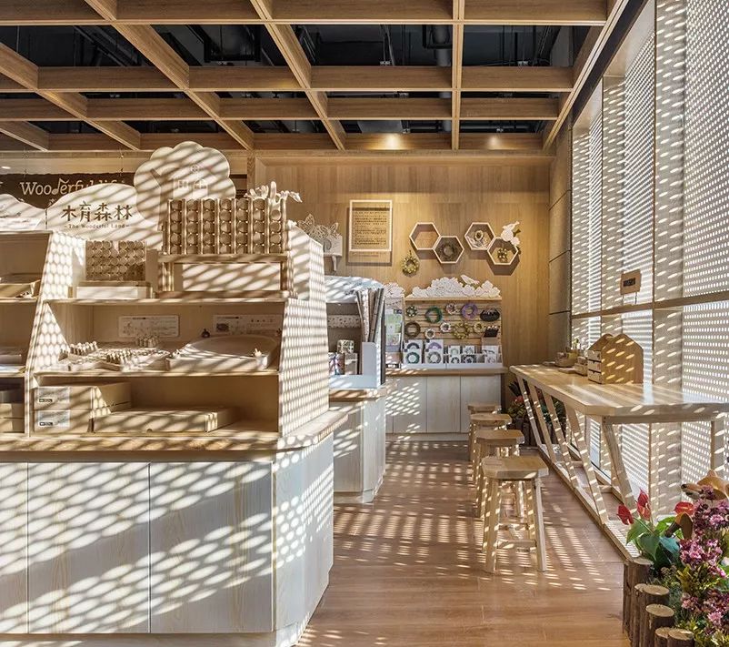 人們還可以在文創(chuàng)區(qū)完成手作,享受午后陽光穿過沖孔板撒下的斑駁光點;松弛的環(huán)境下,在咖啡區(qū)完成工作;百無聊賴的周末,進入店內隨手拿起一本書,讓書海把自己包裹。