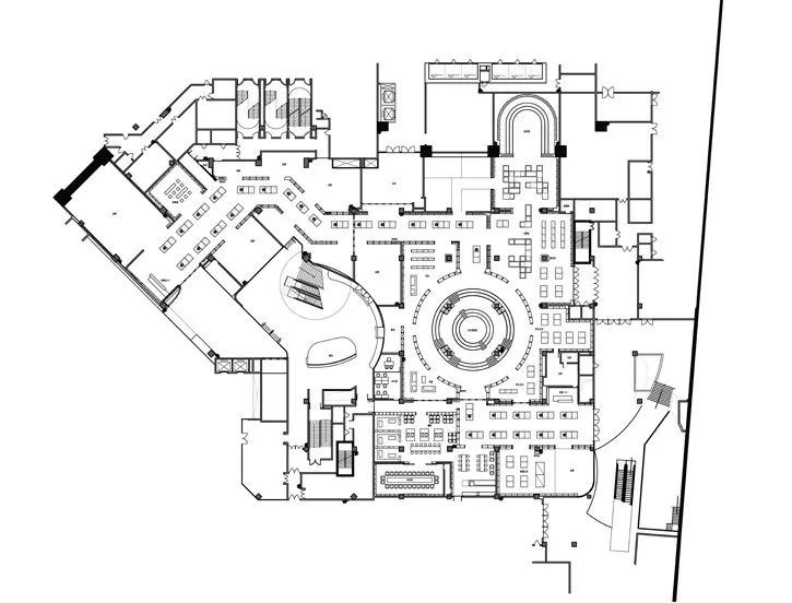 通道蔓延交匯,將人們引領至覔書店東莞國貿城店的獨特印記——「聚光堂」(Hall of Enlightenment)。