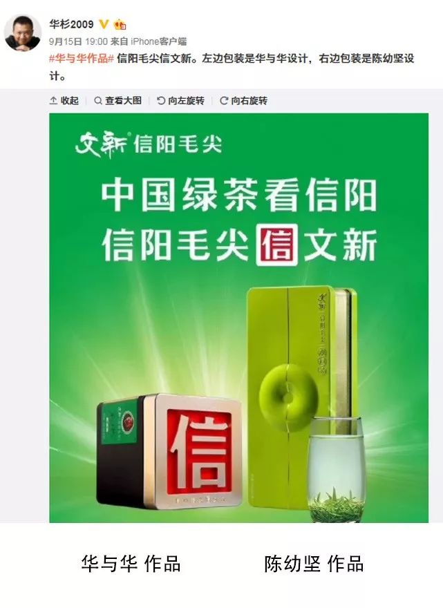 微博上一組華與華與陳幼堅的作品對比圖引起大家的圍觀,貼子下方的留言爭論不休...