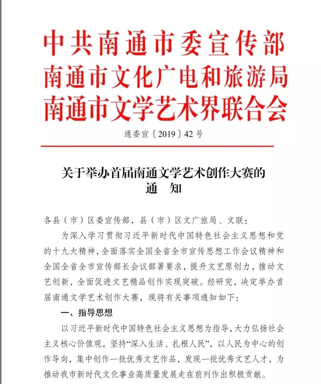 附:《關于舉辦首屆南通文學藝術創作大賽的通知》文件