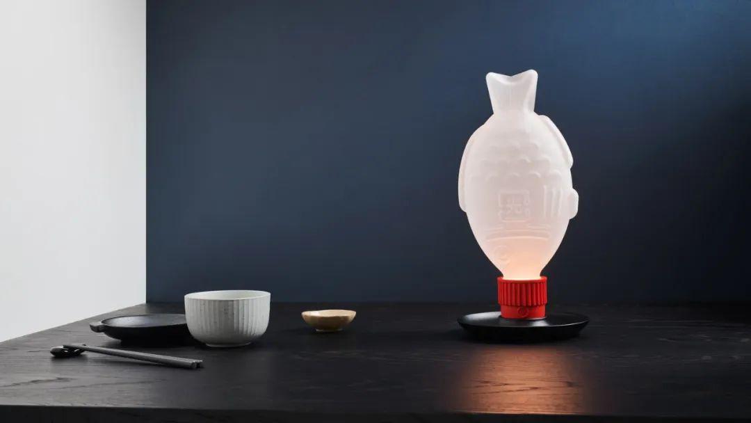 澳大利亞工作室 Heliograf的產品設計 Light Soy Table Lamp / Light Soy Pendant Light。 將大家熟悉的魚形迷你醬油容器放大造型,配合底座和燈罩,可以成為臺燈或吊燈。采用磨砂玻璃制成,更加擬真,也有恰當的溫柔燈光。