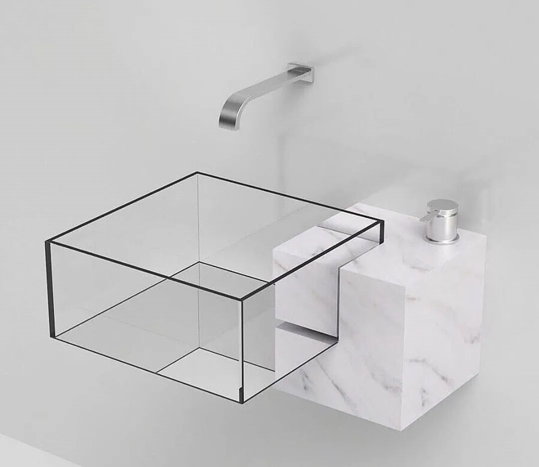 這組由大理石與玻璃組成浴室水槽名為—— Kub,有著極其簡約的幾何線條,簡約到幾乎隱形了一般。Victor Vasilev設計這組作品的目的在于探尋 以最純凈手法完成對兩種極端材料的設計與加工,最終的形態表達出材料的本質與力量。