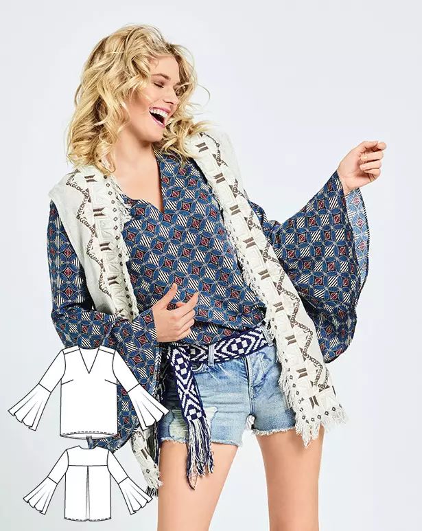 這種干凈的風(fēng)格,有帶狀的衣領(lǐng),背褶和袖套,被廣泛的裝飾在一個狂野的迷你星印上,被完美地配上一雙皮褲和德比靴。