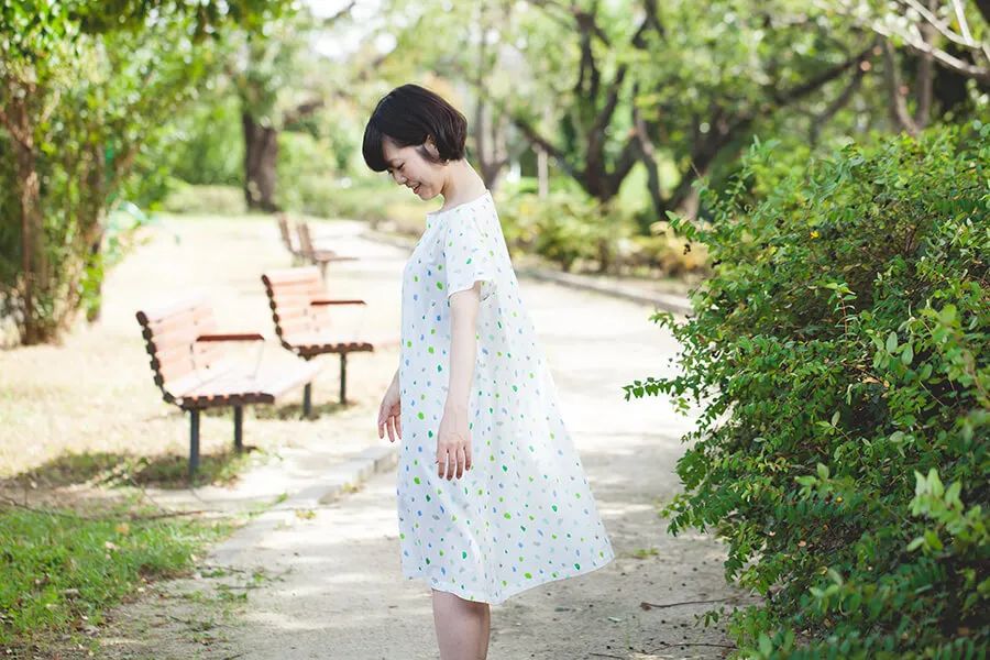 一條輕盈的A字連衣裙,版型簡單,穿起來很純粹,很可愛。選擇輕薄的面料可以獲得柔軟的感覺。如果你在腰間系一條同色系制成的腰帶,則可以輕松更改廓形。