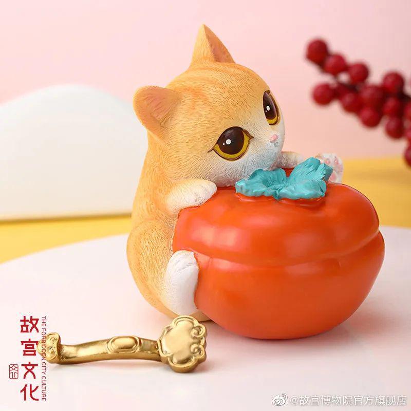 “逛”下故宮博物院吧! 每回的故宮文創(chuàng) 都能帶給大家許多驚喜 這不 故宮也緊跟時尚潮流 出了兩款好玩的“盲盒”! 事事如意納福貓;外盒插畫加入經(jīng)典的故宮貓形象 同時摘取《弘歷歲朝圖》軸中的柿子、如意紋樣 三者有機結合 貓咪環(huán)抱朱柿的畫面 萌趣福氣!