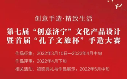 為深入發掘濟寧文化旅游資源的豐富內涵、時代價值和獨特魅力,培育壯大本土傳統手工藝企業,打造濟寧手造重點產業和高品質產品,推動“山東手造·濟寧好禮”工程實施,現就舉行第七屆“創意濟寧”文化產品設計暨首屆“孔子文旅杯”手造大賽作品征集如下。