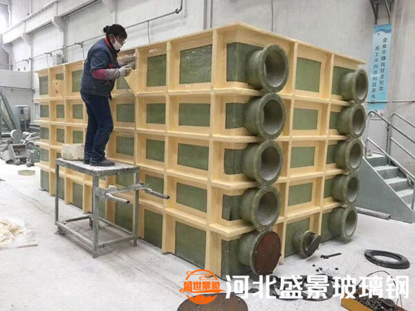 根據未使用的介質和溫度,玻璃鋼方槽由未使用的樹脂進行模具制作,研磨膏鋪設到一定厚度后,固化后去除內部磨料,根據未使用的鱗片制作外鋼骨架,起到加固外墻的作用。