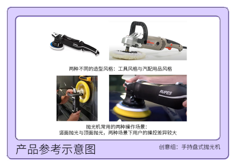 良好的ID設(shè)計風(fēng)格:目前的拋光機主要用于汽車行業(yè)的拋光,偏工具的ID風(fēng)格會與汽車行業(yè)有偏離;