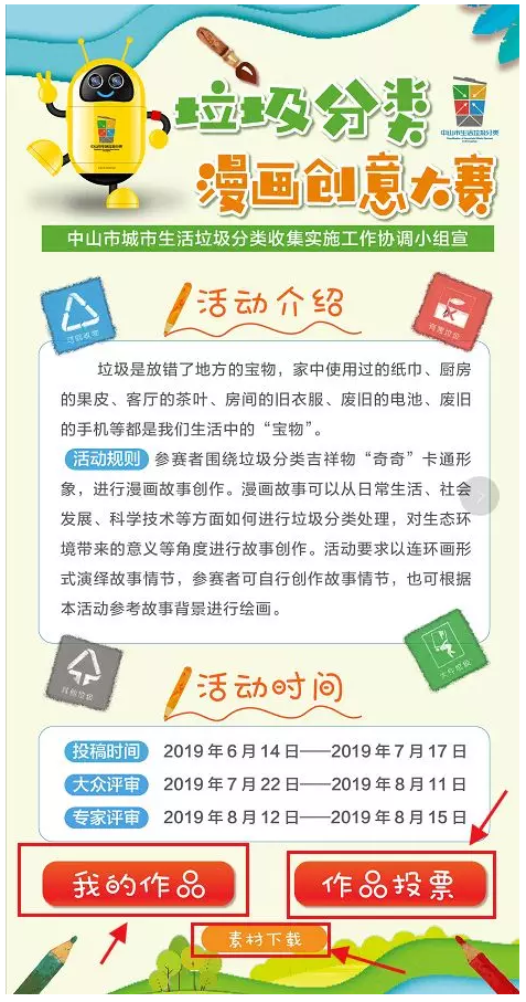 垃圾分類就是新時尚!中山市生活垃圾分類工作已全面啟動,推行垃圾分類,需要全社會的共同行動。為進一步推進我市生活垃圾分類工作,加強生活垃圾分類宣傳和科普教育,培養市民自覺實行垃圾分類的好習慣,吸引社會各界關注,營造濃厚的“垃圾分類、人人參與”的熱議氛圍,為改善生活環境作努力,為綠色發展、可持續發展作貢獻,特公開舉辦垃圾分類漫畫創意大賽,向市民有獎征集富有中山特色、易于傳播、內容健康的生活垃圾分類漫畫創意作品。
