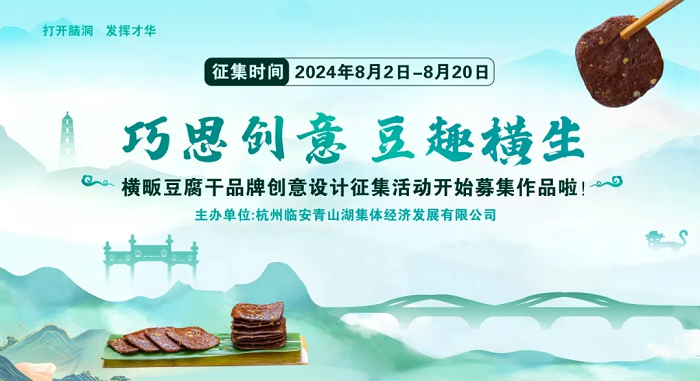 為深入推進臨安“橫畈豆腐干”系列品牌創建,匯聚更多創意,在傳承傳統非遺小吃的同時貼合現代消費需求,使品牌更具專業性和競爭力,助推產業高質量發展,特舉辦橫畈豆腐干品牌創意設計征集活動,面向社會公開征集橫畈豆腐干品牌 logo、禮盒包裝及即食小包裝設計。