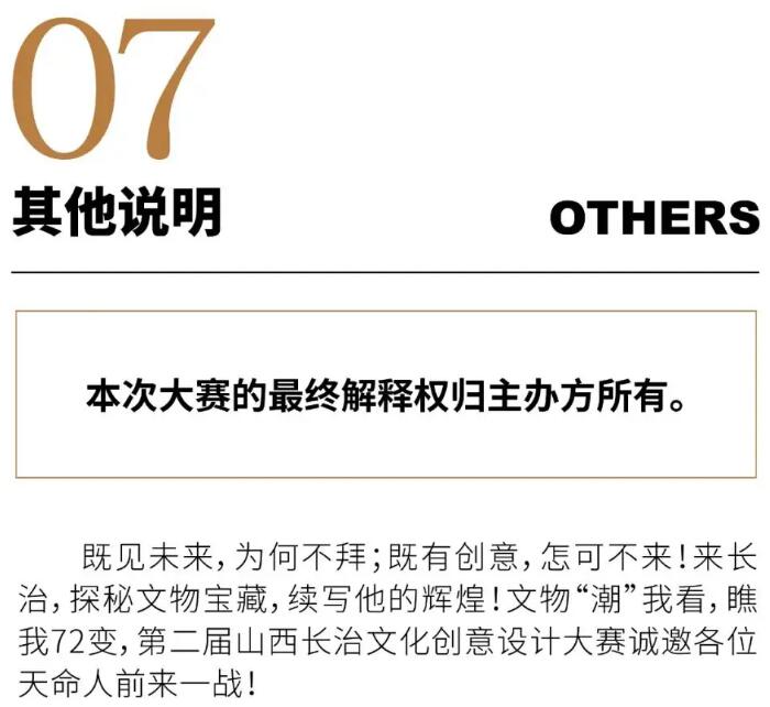 (六)大賽組委會擁有對參賽設計稿件進行初步篩選的權利,以確保作品符合大賽規定的要求和內容標準,且不得存在粗糙制作或抄襲行為。