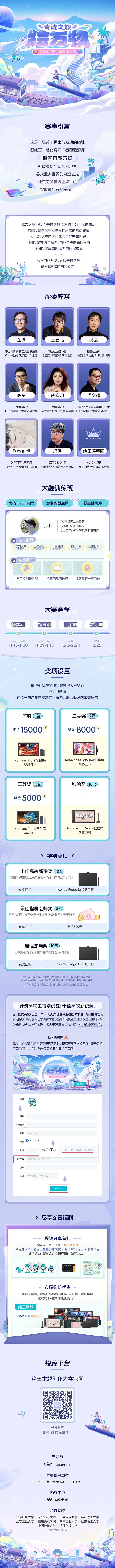 【大賽主題】:本次賽事以【奇跡之旅繪萬物】為主題,誠邀所有創作者、繪畫愛好者和高校學子們發揮靈感巧思,共繪這場跨越時空、連接萬物的奇跡之旅!