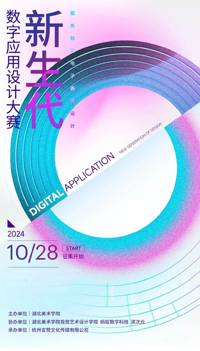 對于追求獨(dú)特個(gè)性和時(shí)尚潮流的用戶而言,如何讓自己的智能手表在眾多同類產(chǎn)品中脫穎而出,成為一個(gè)重要的突破口。未來,智能手表技術(shù)的不斷發(fā)展和創(chuàng)新,我們有理由相信,個(gè)性化定制將會成為智能手表市場的一大亮點(diǎn)和核心競爭力。為了激發(fā)創(chuàng)意設(shè)計(jì)的潛力,緊跟科技發(fā)展趨勢潮流,并為青年設(shè)計(jì)師提供一個(gè)展示才華的平臺,湖北美術(shù)學(xué)院及螞蟻數(shù)字科技聯(lián)合濱次元、杭州言贊文化傳媒有限公司,舉辦首屆“新生代”數(shù)字應(yīng)用設(shè)計(jì)大賽,并組建“新生代”數(shù)字應(yīng)用設(shè)計(jì)大賽組委會(以下簡稱“組委會”)。