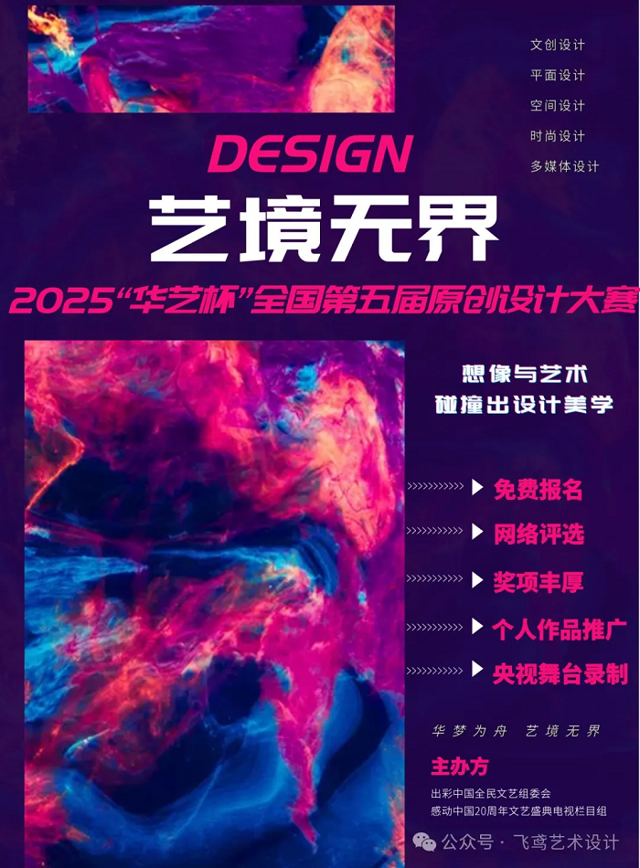 想像與藝術碰撞出設計美學,而用手和頭腦創造出那些美學的人是真正的勇士與藝術家。為了讓更多人看到創造與設計帶來的無盡想象,我們誠摯邀請您參加“藝境無界”華藝杯2025年度全國第五屆原創設計大賽,期待您的加入讓設計更美妙!