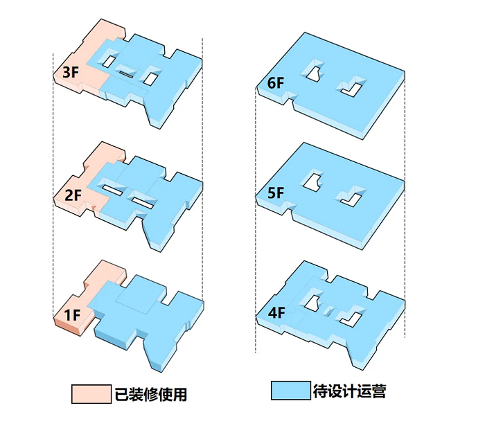 項(xiàng)目占地約60畝,總建筑面積11萬(wàn)㎡,地上6層,面積7.5萬(wàn)㎡,層高5-6米,局部挑高20米以上,其中1萬(wàn)m2政務(wù)服務(wù)中心已投用,日均人流量約2000人次;地下2層為停車(chē)場(chǎng)和食堂,面積2.5萬(wàn)㎡。約 6.5 萬(wàn)㎡毛坯空間待設(shè)計(jì),體量大、空間靈活。