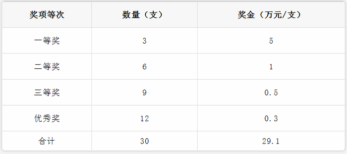 獎金池近30萬:一等獎團隊,每支團隊可以獲得5萬元獎金。總獎金將覆蓋所有獲獎團隊(包括一等獎、二等獎、三等獎、優秀獎共30支團隊)。