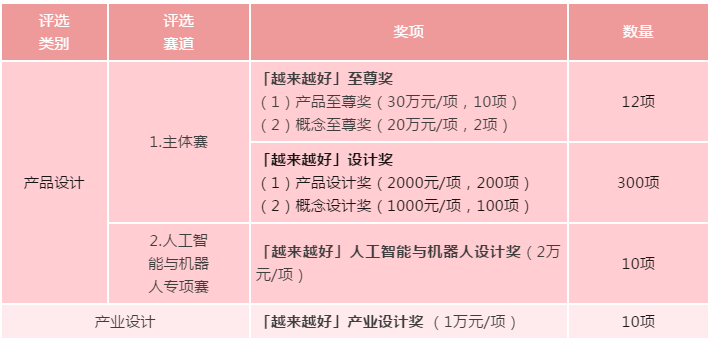「越來越好」國際設(shè)計(jì)大賽設(shè)置產(chǎn)品設(shè)計(jì)和產(chǎn)業(yè)設(shè)計(jì)兩大類別。產(chǎn)品設(shè)計(jì)分設(shè)主體賽和專項(xiàng)賽。