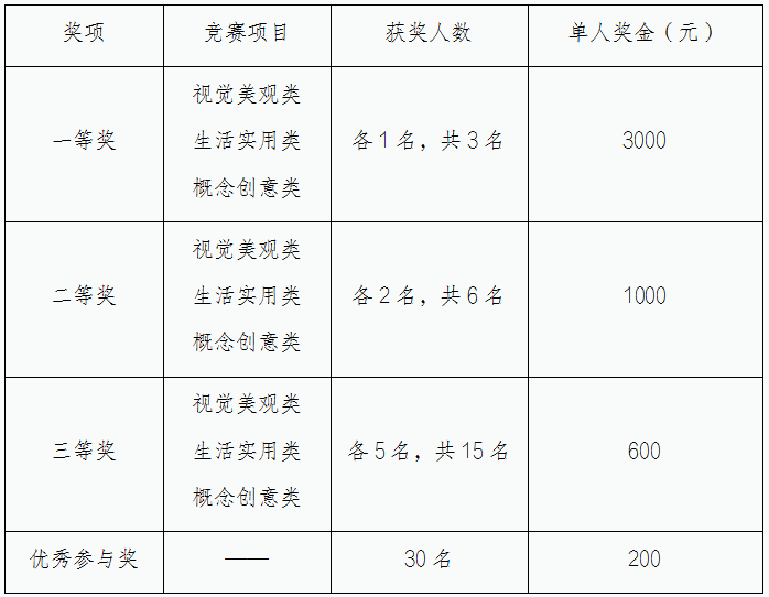 (一)競賽項目獎項(獎金含20%個人所得稅)
