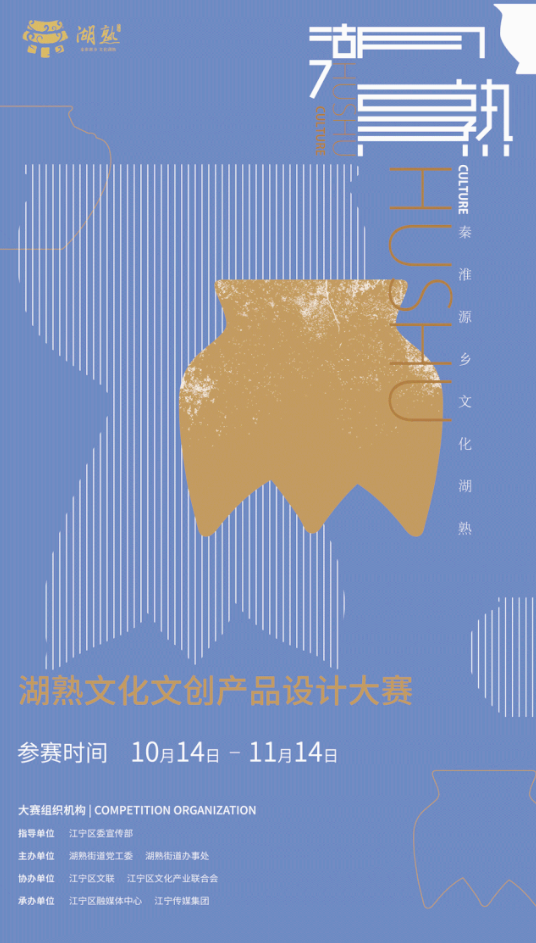 為完善湖熟的地域文化形象,推廣湖熟的知名度和影響力,挖掘和利用湖熟豐富的文化資源,發起主題為“印象湖熟”的文化文創產品設計大賽,全球各個設計創意領域征集作品,誠邀從事藝術與設計的專業人士、院校師生,以及對本大賽感興趣的各界人士積極投稿!