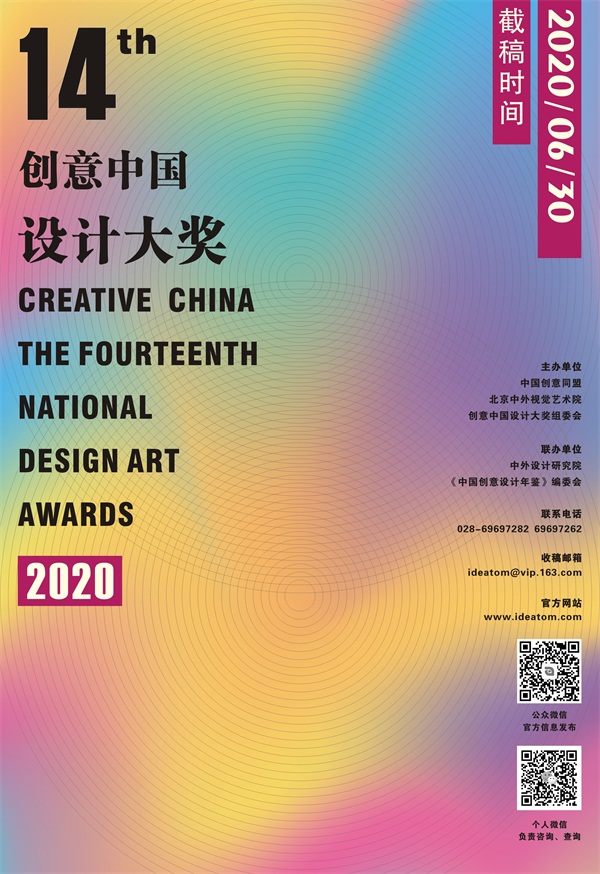 “創意中國”設計大獎自2007年啟動以來,已走到第十四個年頭,每屆大獎都代表著當前中國設計研究與創作的年度水準。作為中國創意設計界最高規格的設計獎項,其先鋒性、學術性、規模性在中國設計發展史上都是史無先例的。由北京中外視覺藝術院、中國創意同盟網主辦,中外設計研究院、《中國創意設計年鑒》編委會聯辦的第十四屆“創意中國”設計大獎于2020年3月在中國成都正式啟動征集。本屆大獎涵蓋平面、工業、環藝、服飾、綜合五大設計類別,全面溝通設計產業的各個層面,旨在進一步推廣新銳設計師的創意思考和設計表達,探索創意設計發展的新趨勢,促進我國創意產業不斷向縱深發展。