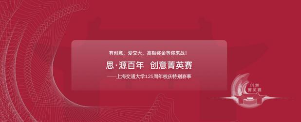 在上海交通大學即將迎來125周年校慶之際,上海交通大學文創學院、設計學院和上海交通大學文化發展基金將聯合舉辦“思·源百年”創意菁英賽,借助125周年校慶這一全球交大人的盛事,面向全球范圍的大學生、文化創意從業者,特別是交大學生、交大校友、以及對交大發展關注、關心、支持的朋友們,共同發揮創意,實踐理念,征集交大文化主題文創產品的創新理念和創意成果,遴選優秀作品。獲獎作品或將有可能在125周年校慶之際,作為官方紀念品面向校友發行。