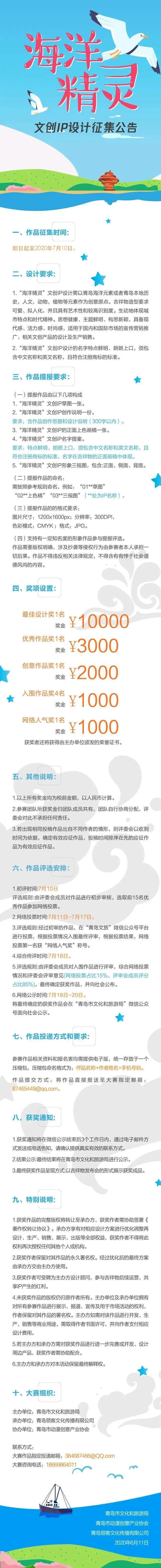 即日起,青島市文化和旅游局面向全社會公開征集青島市“海洋精靈”文創IP設計方案,以新穎詩意的文創IP助力打造青島文化和旅游產業的新形象。