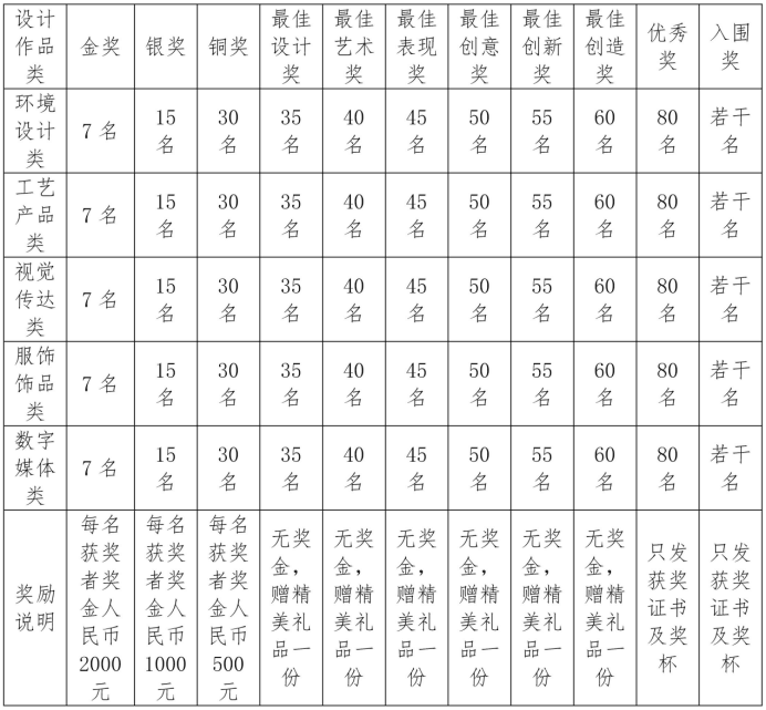 7、優(yōu)秀指導(dǎo)教師獎(jiǎng):院校教師所指導(dǎo)的學(xué)生作品中,有2件以上作品獲級(jí)別獎(jiǎng),具備優(yōu)秀指導(dǎo)教師獎(jiǎng)的獲獎(jiǎng)資格。