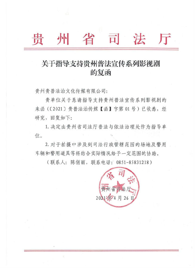 為積極貫徹執行國家關于依法治國的有關精神和貴州省人大頒布施行的《貴州省法治宣傳教育條例》,加大全民普法教育,增強全民普法意識,為保一方平安。由貴州貴普法治文化傳媒有限公司策劃執行和貴州省司法廳指導支持的《100集貴州普法宣傳系列影視劇》活動已經正式啟動。