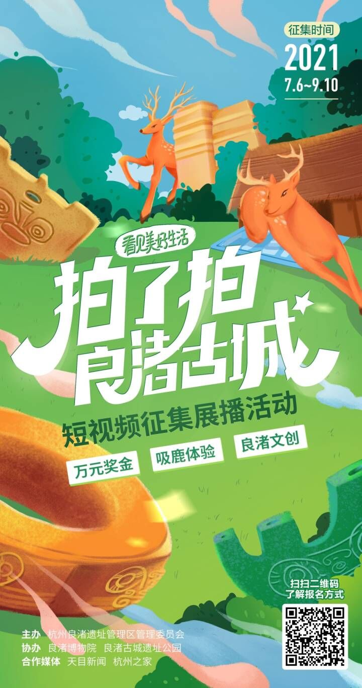 7月6日是杭州良渚日,作為2021“杭州良渚日”暨良渚文化周的系列活動之一,“看見美好生活——拍了拍良渚古城”短視頻征集展播活動正式向全網創意人士開放報名通道。