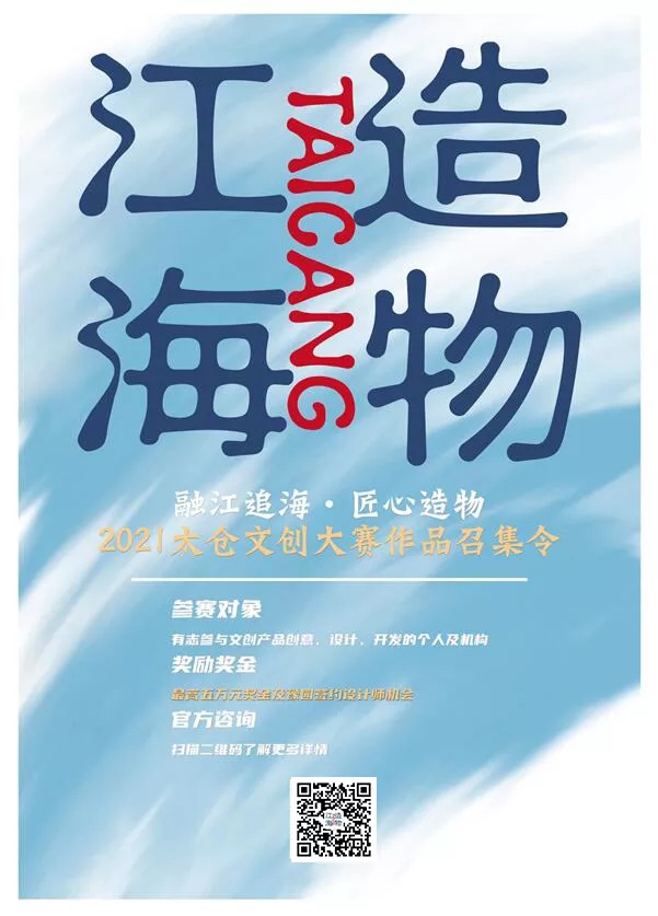 所征集的作品以電子文件為主,文件格式:分辨率不低于300dpi,jpg格式,排版在一張A3幅面內(nèi),圖片大小不超過8M,發(fā)送至郵箱taicangwc@126.com,郵件與文件命名為:“2021太倉文創(chuàng)大賽+組別+作者姓名+作品名稱”。(備注:如需江海造物VIS融入作品中可掃描二維碼獲取詳情)